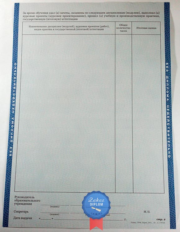 - Диплом, изготовленный на настоящем бланке Гознак;